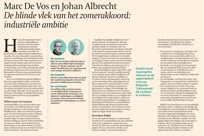 Als we niet opletten dreigt een rampscenario waarbij we de competitiviteit van onze industrie verder zien wegkwijnen zonder dat we de historische kans van een nieuwe industrialisatie grijpen. Om een antwoord te bieden aan de nieuwe schokken - door de Amerikaanse president Donald Trump, de Europese Unie en Duitsland - zijn bijkomende urgente maatregelen noodzakelijk. Daarbij zijn er vier prioriteiten.